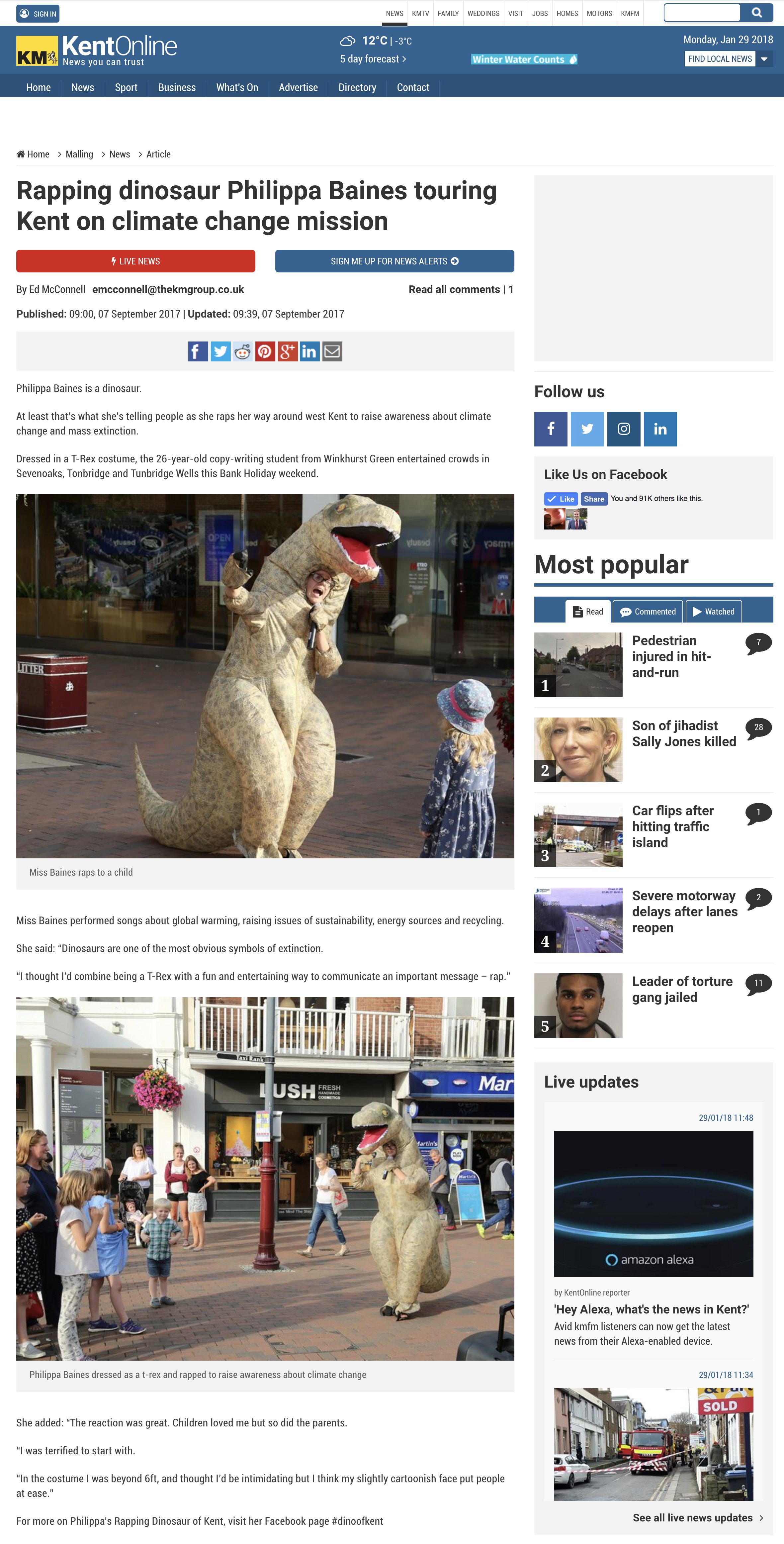 Earth is going through one of the biggest extinction events of all time. So Philly dressed up as t-rex and rapped about climate change to the people of Kent.
